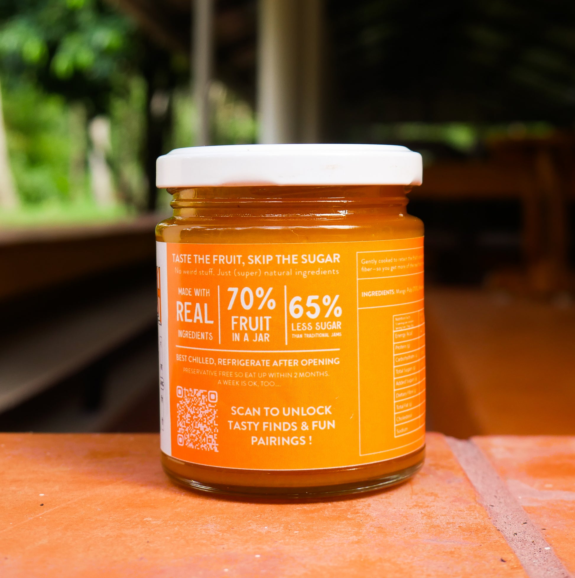 Ingredients: Mango (70%), Khandsari, Lemon Juice, PectinΒ